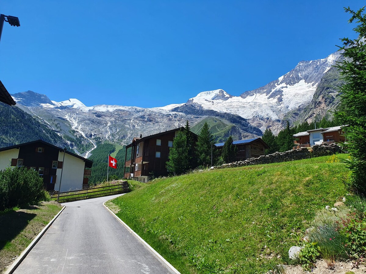Charming studio with a kitchen, bathroom, wifi and small south-east terrace for 2 people in a queen size bed. 2 minutes from the town centre and 50m from the ski slope, this little cocoon is ideal to escape from everyday life and find yourself in the calm of the mountains. It is located on the ground floor of the chalet Evelyne, a few steps away from the traditional restaurant "Schäferstube".